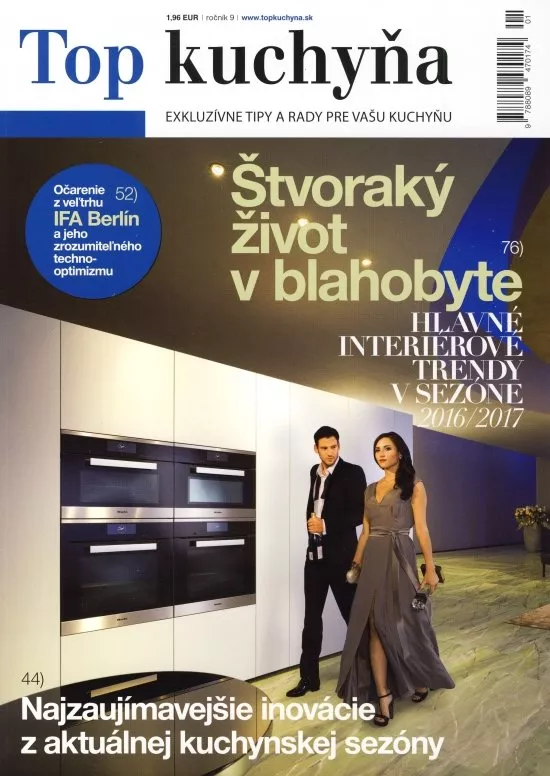 Exkluzívne tipy a rady pre vašu kuchyňu. Prinášame vám novinky a zaujímavosti z medzinárodných veľtrhov a výstav, ako aj z domácej produkcie výrobcov nábytku, zariadení, technológií kuchynského vybavenia a doplnkov. Najnovšie trendy, najmä v oblasti farieb, od popredných dizajnérov pre sezónu 2016/2017, ktoré budú vládnuť v interiéroch. Zamerané na návrhy a trendy nadčasové. Modernú kuchyňu charakterizujú hlavne nové, technicky a dizajnovo dokonalejšie spotrebiče. Nájdete tu aj nové súpravy riadu z moderných materiálov vhodných pre všetky druhy ohrievania s možnosťou umývania v umývačkách riadu.