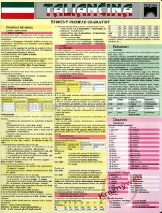 Obojstranne laminovaná. Prehľad gramatiky spracovaný vo forme tabuľky na rýchlu orientáciu a jednoduché použitie.